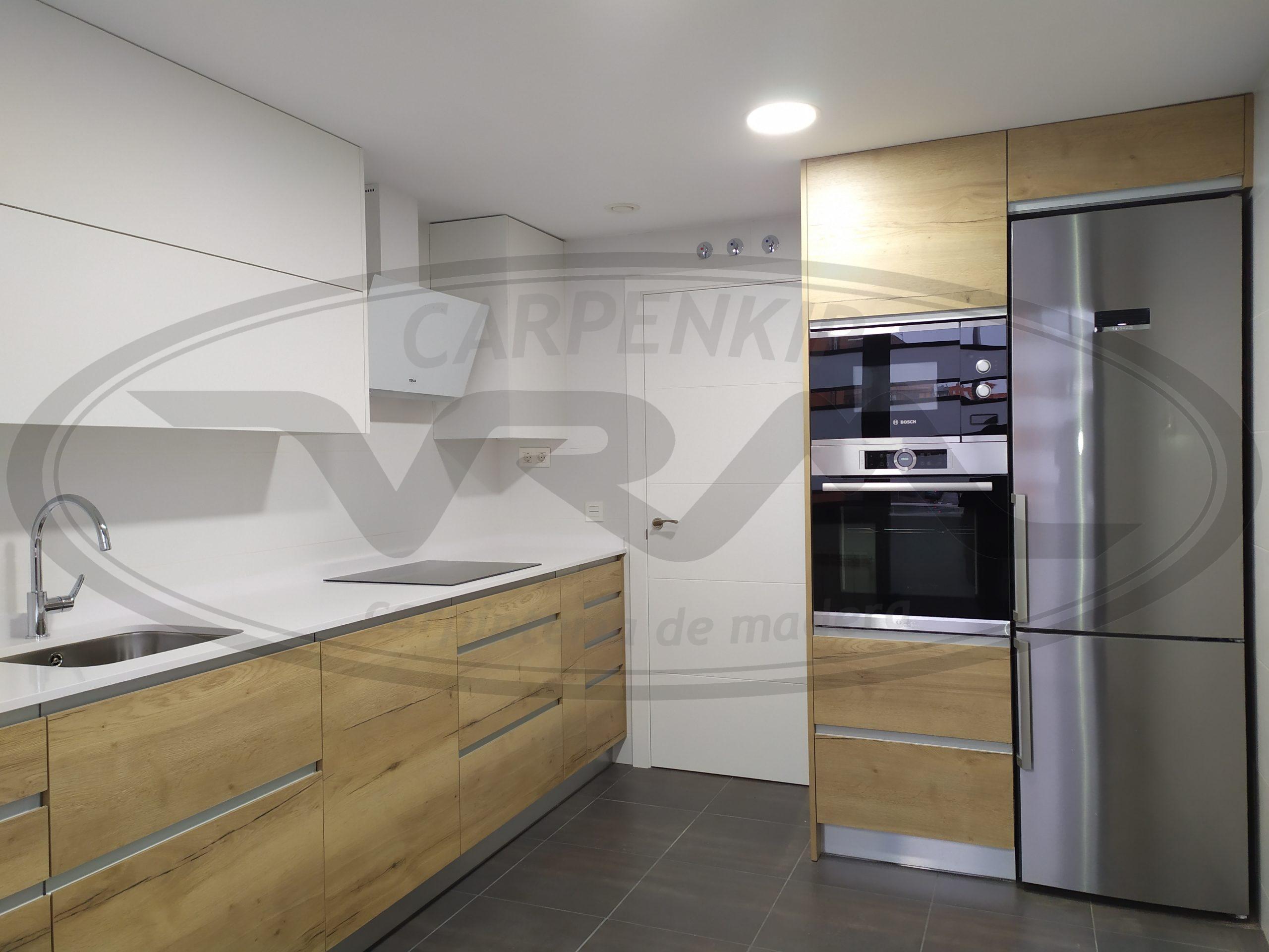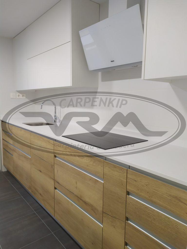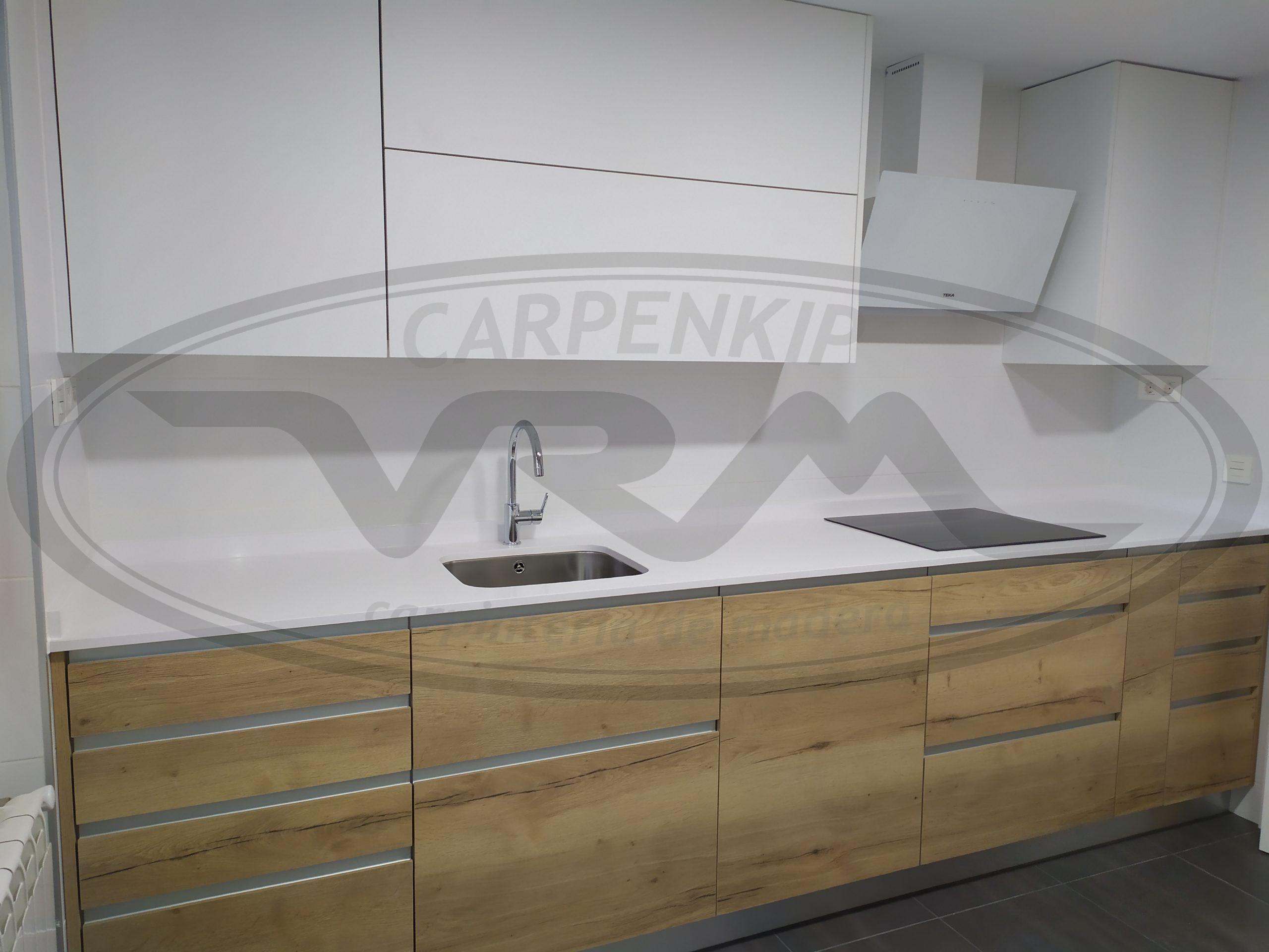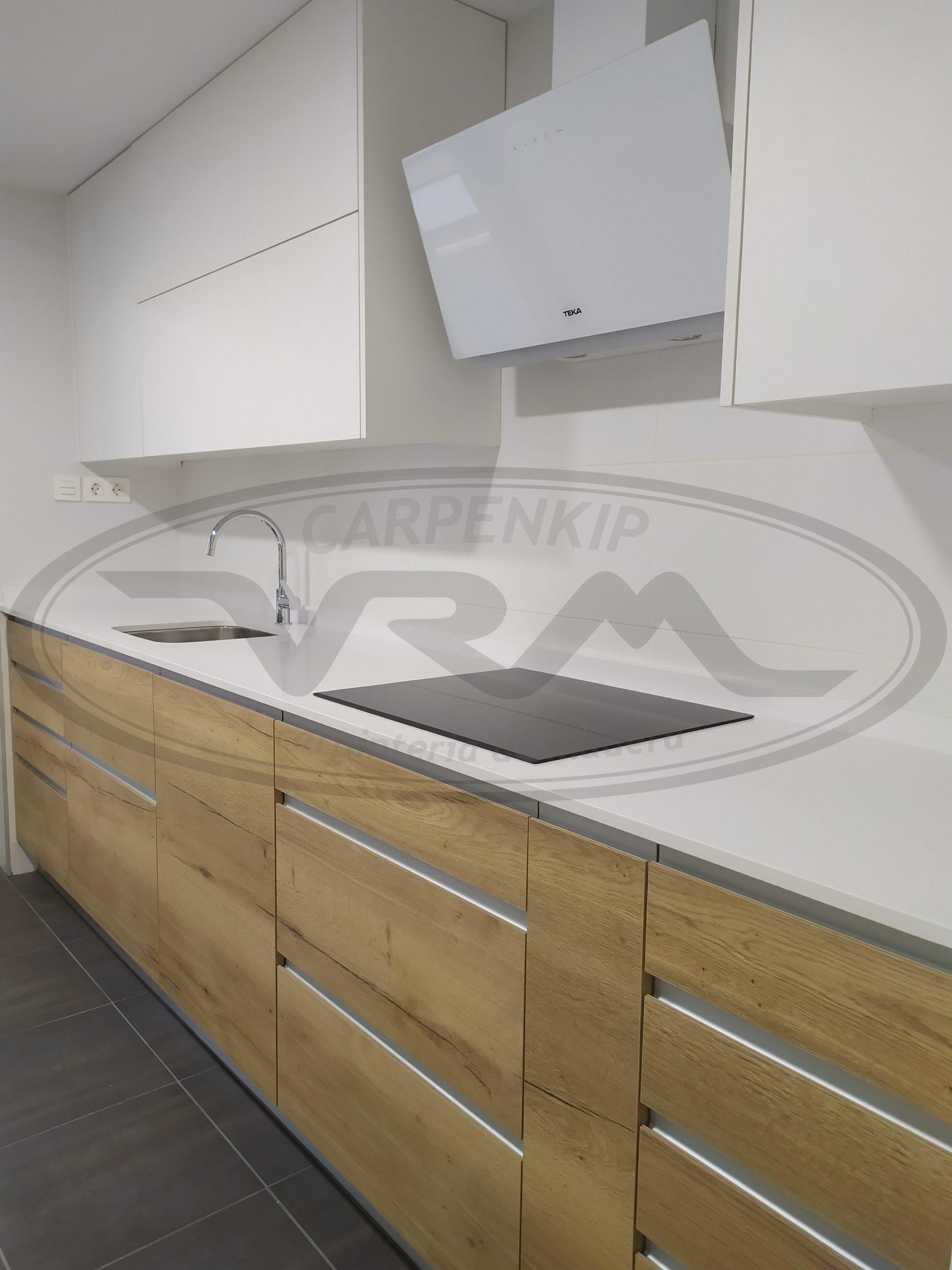 Cocina laminado combinado madera y blanco
