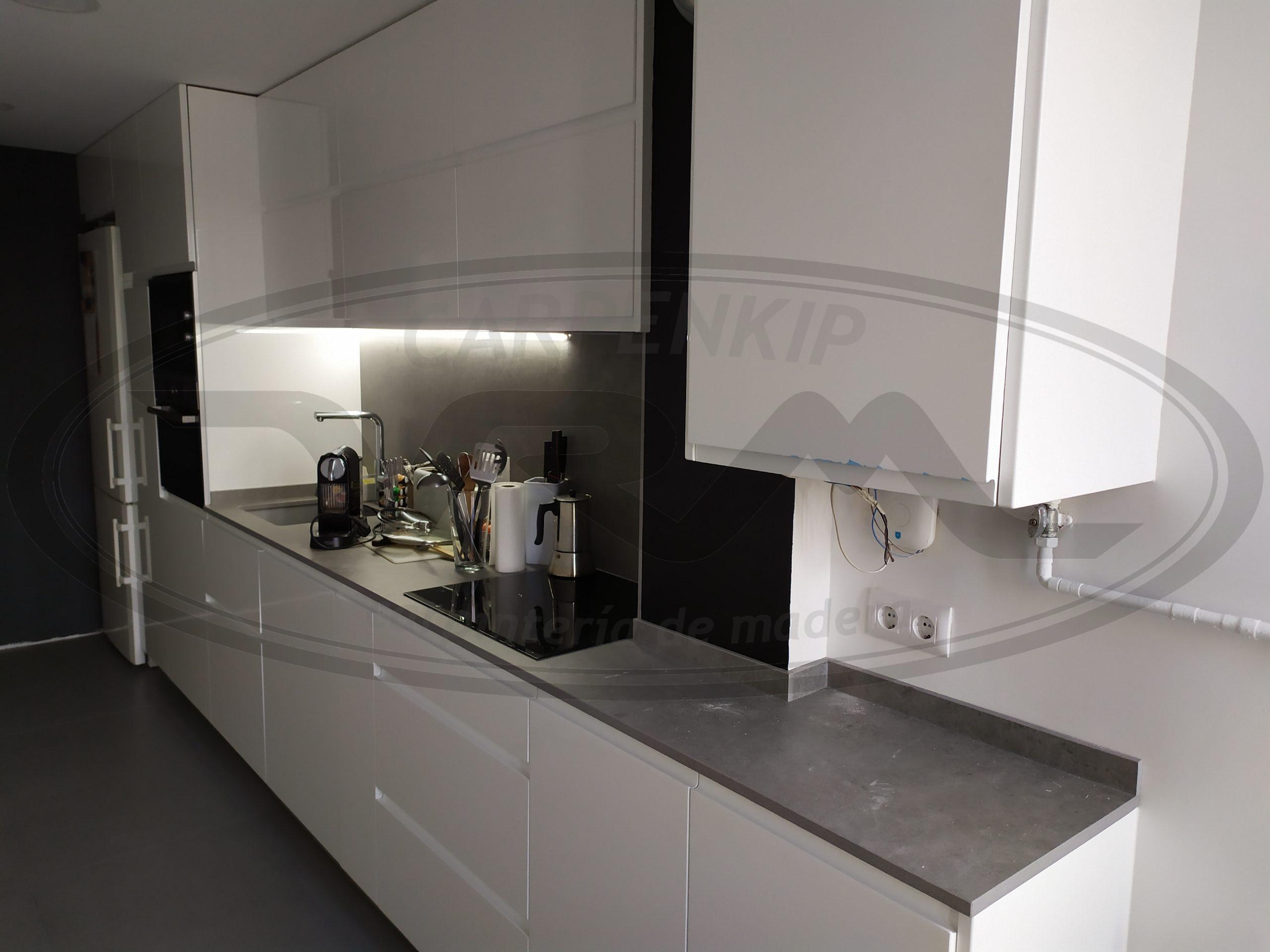 Publicado el por adminCocina uñero blanco brillo Amueblamiento con frentes de PVC uñero blanco brillo. Encimera Dekton