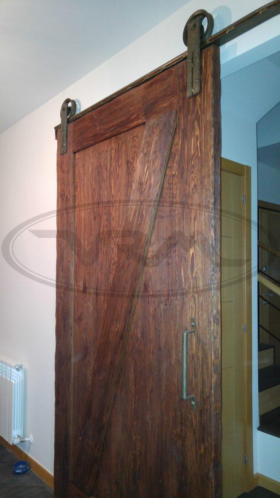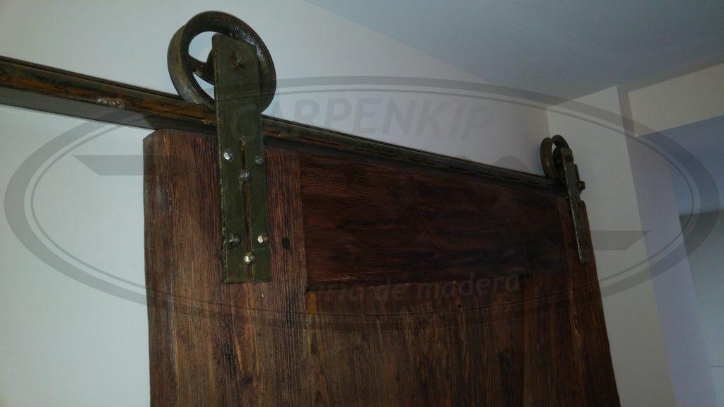 Publicado el por adminPuerta corredera estilo granero Pino macizo envejecido Carriles y poleas hierro viejo